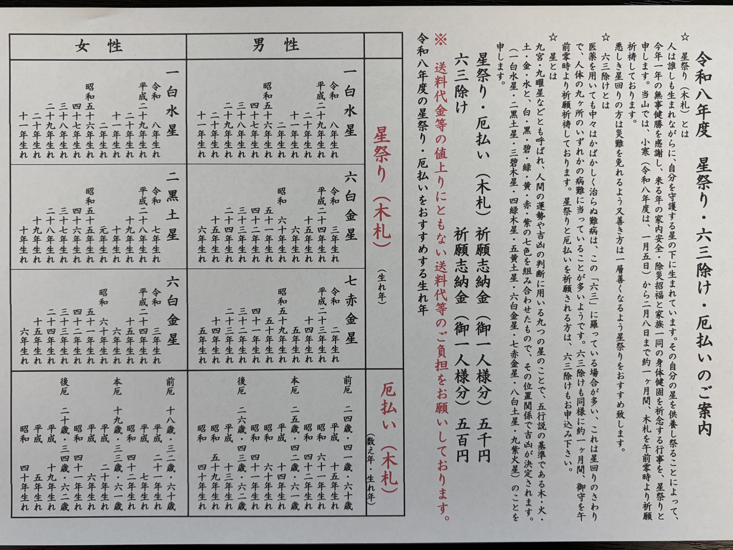 令和八年度 星祭り・六三除け・厄払いのご案内