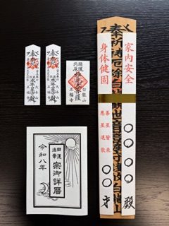 - 祈願内容(家内安全・身体健固・交通安全・商売繁盛・無病息災・當病平癒・良縁成就・子孫繁栄・安産祈願・心願成就・渡航安全・学徳増進・合格祈願・善星皆来悪星退散・心身健全・開運招福の中から御一人様三つまで)